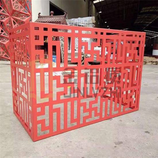 外墻雕花鋁合金空調(diào)罩采用優(yōu)質(zhì)高強(qiáng)度鋁合金板材,其常用厚度為1.5.2.0,2.5,3.0,型號為1100/3003.狀態(tài)為H24。常規(guī)材料尺寸為1220mmX2400mm.其構(gòu)造主要由面板,加強(qiáng)筋和角碼組成。角碼可直接由面板折彎,沖壓成型,也可在面板的折邊上鉚裝角碼成型。加強(qiáng)筋與板面后的電焊螺釘聯(lián)接,使之成為一個(gè)牢固的整體,極大增強(qiáng)了外墻雕花鋁合金空調(diào)罩的強(qiáng)度與剛性,保證了長期使用中的平整度及抗震能力。